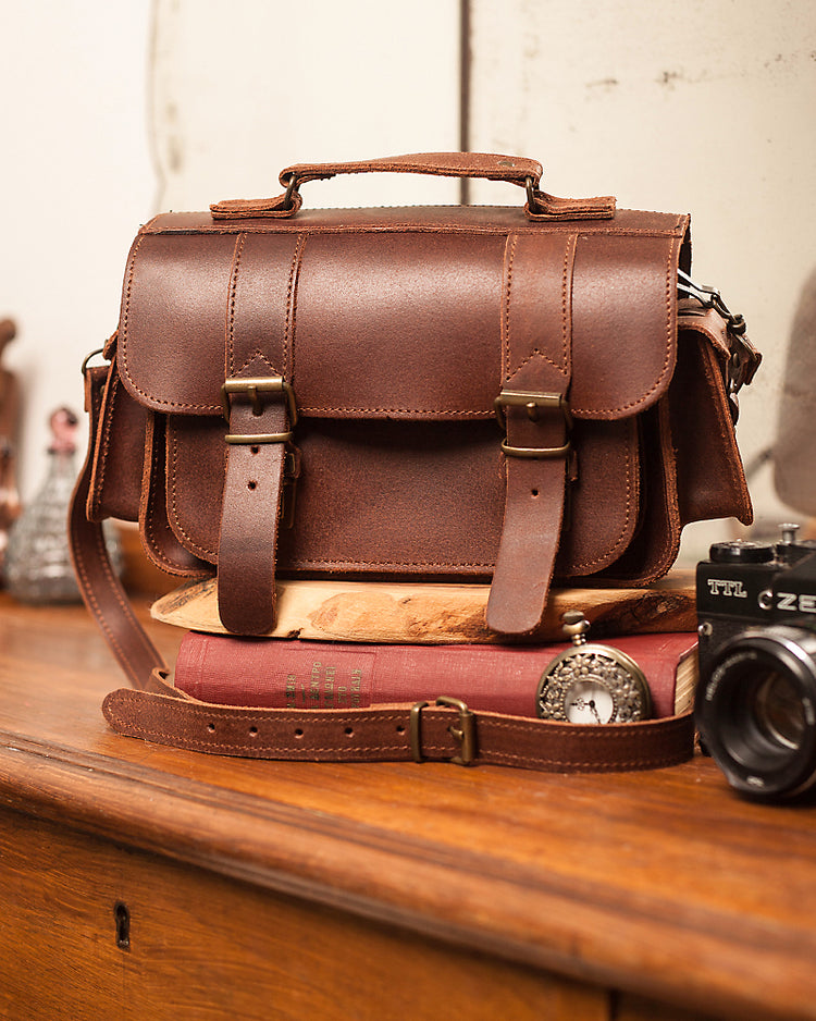 Kameratasche aus Naturleder, Vintage Kameratasche, Kameratasche, Unisex DSLR-Kameratasche