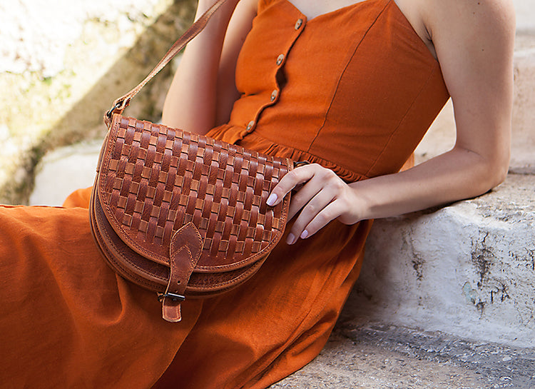 Umhängetasche aus Naturleder für Damen, Satteltasche aus Leder, Geldbörse aus bearbeitetem Leder