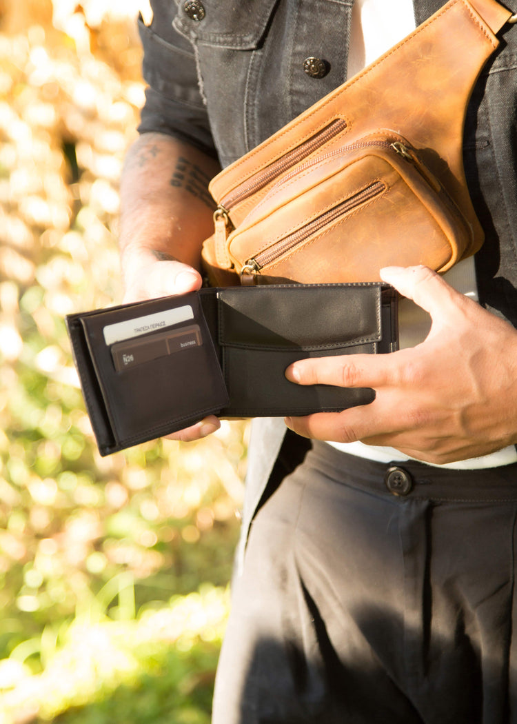 Wir stellen Ihnen unsere exquisit gefertigte Lederbrieftasche für Herren vor, der Inbegriff von Stil und Funktionalität.
