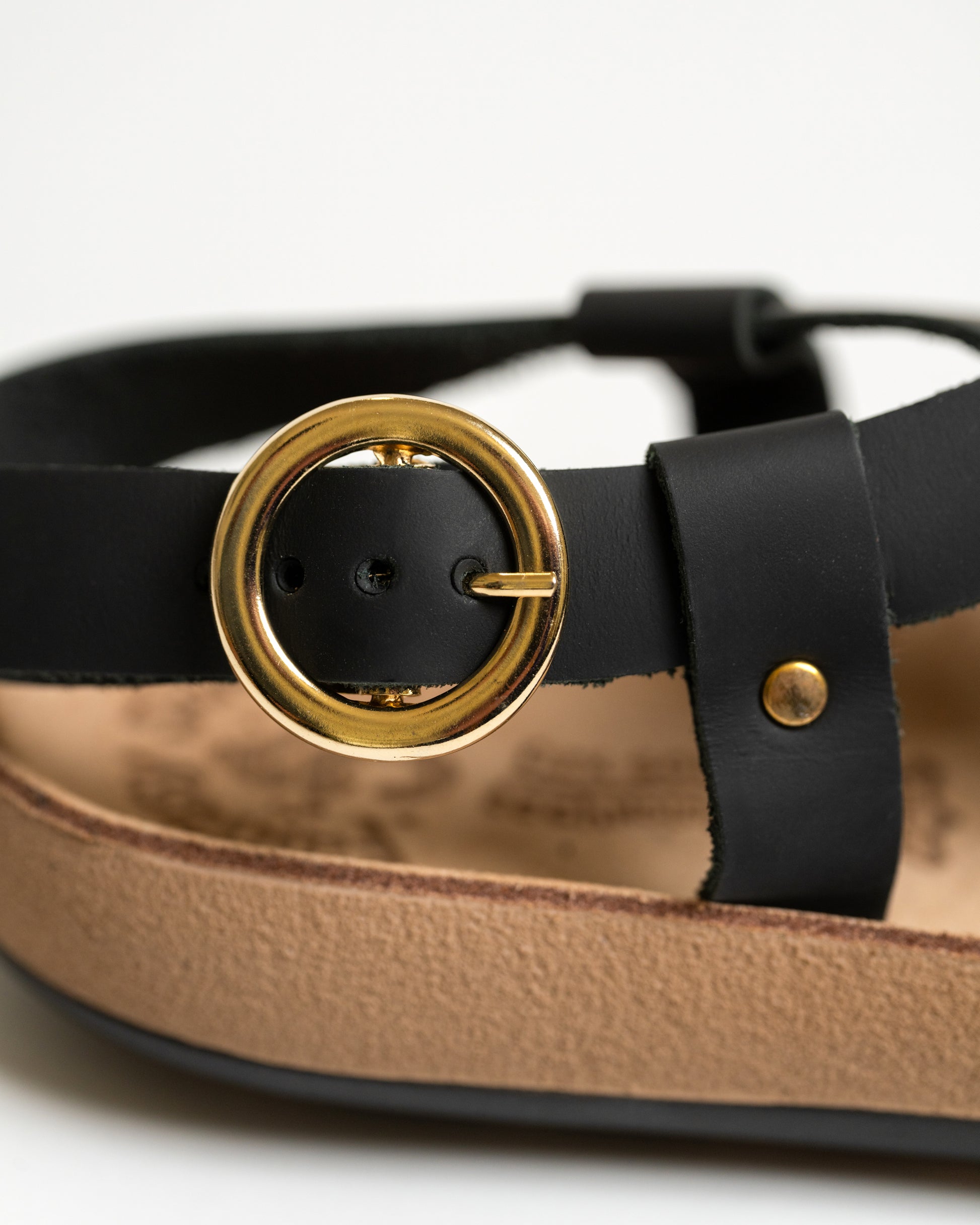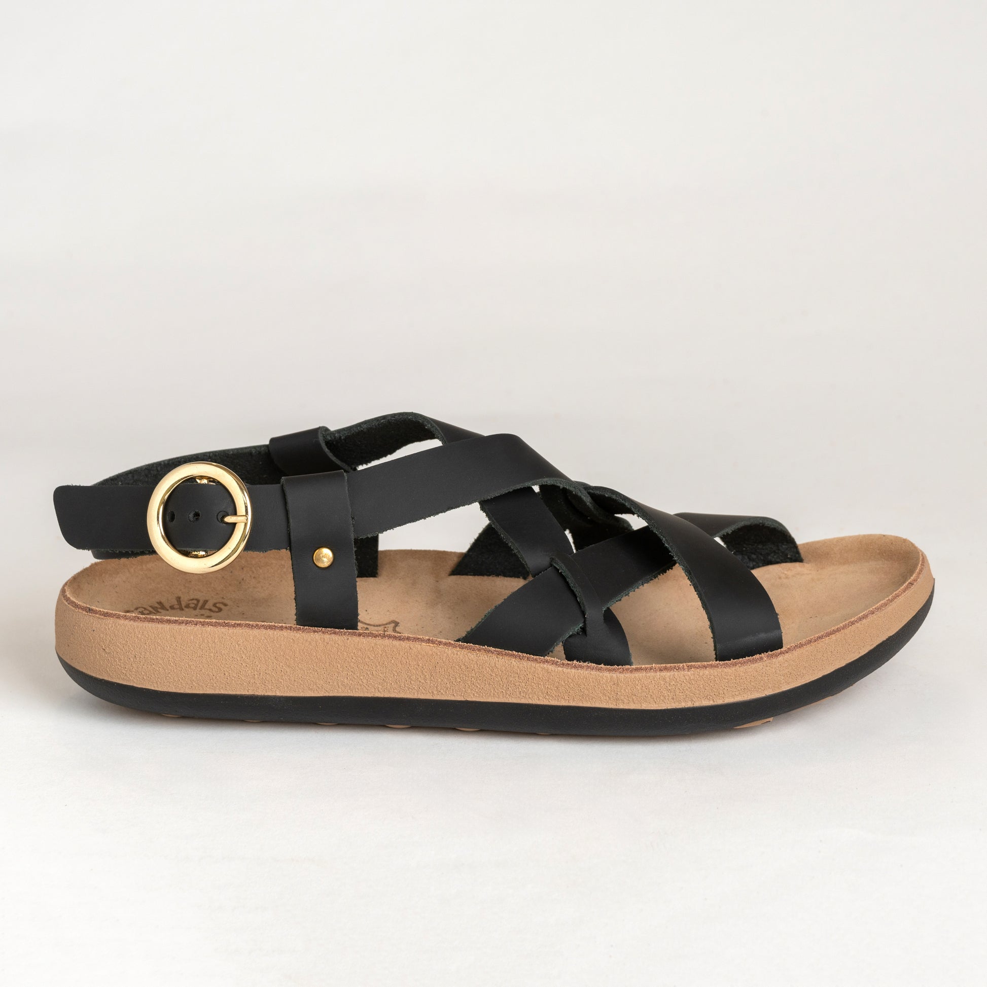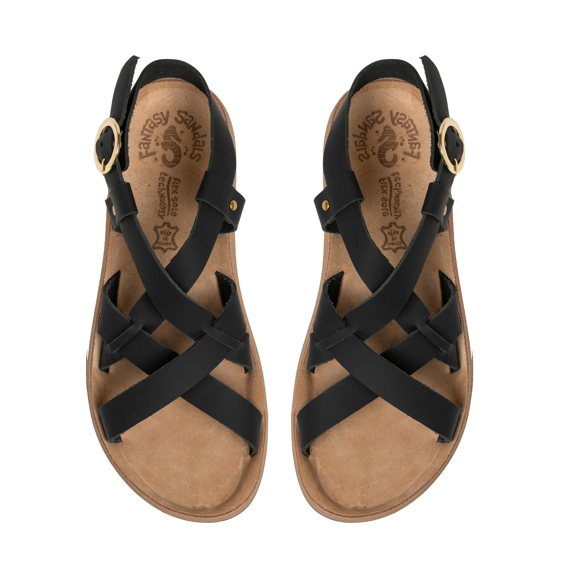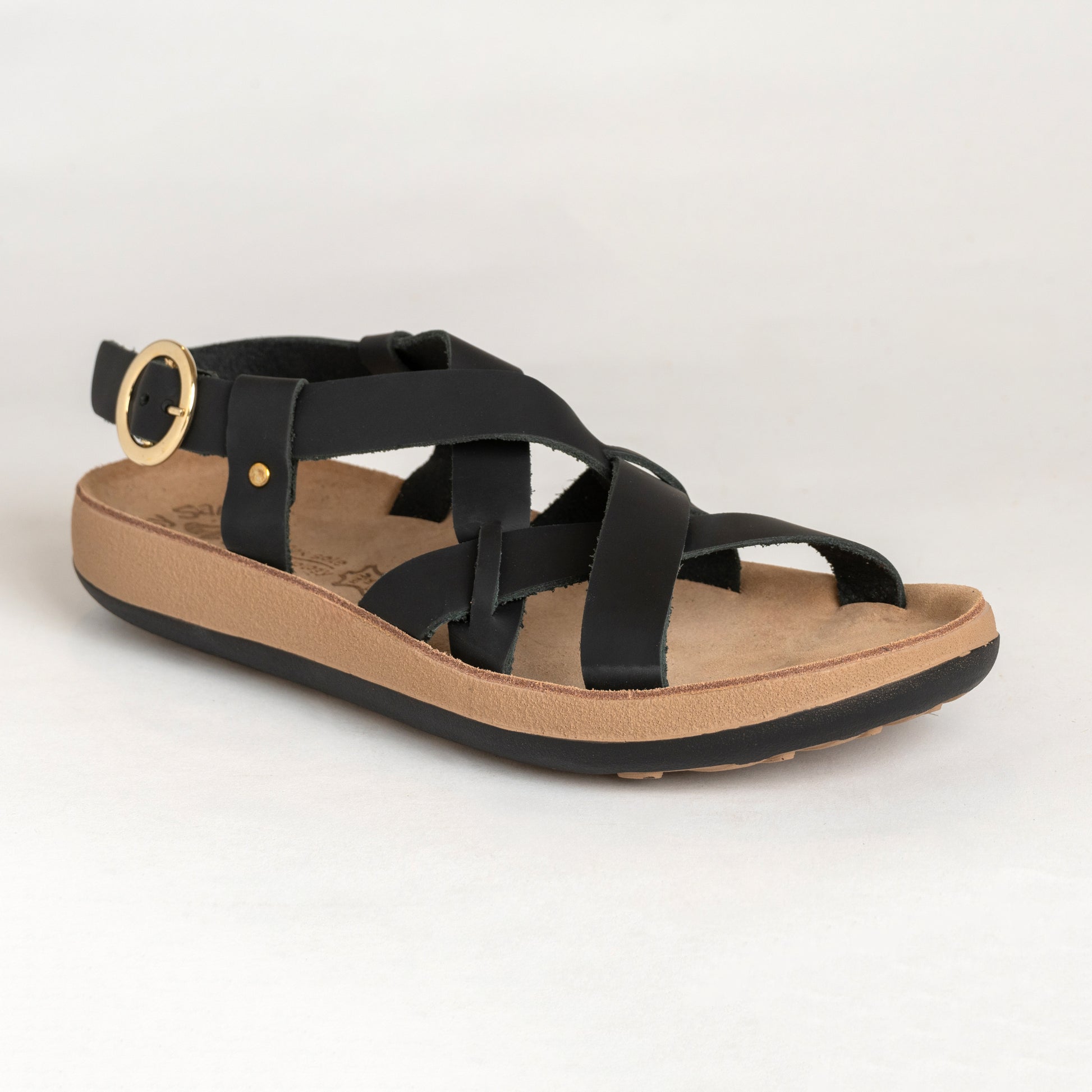 These beautifully crafted leather sandals feature sleek black leather straps that crisscross elegantly over the foot, providing both secure fit and timeless appeal. The adjustable buckle closure ensures a personalized fit, while the cushioned footbed offers exceptional comfort for all-day wear. Perfect for casual outings or dressier occasions, these versatile sandals are a must-have addition to your summer wardrobe. Elevate your footwear collection with these chic and durable leather sandals, designed to keep you comfortable and stylish.