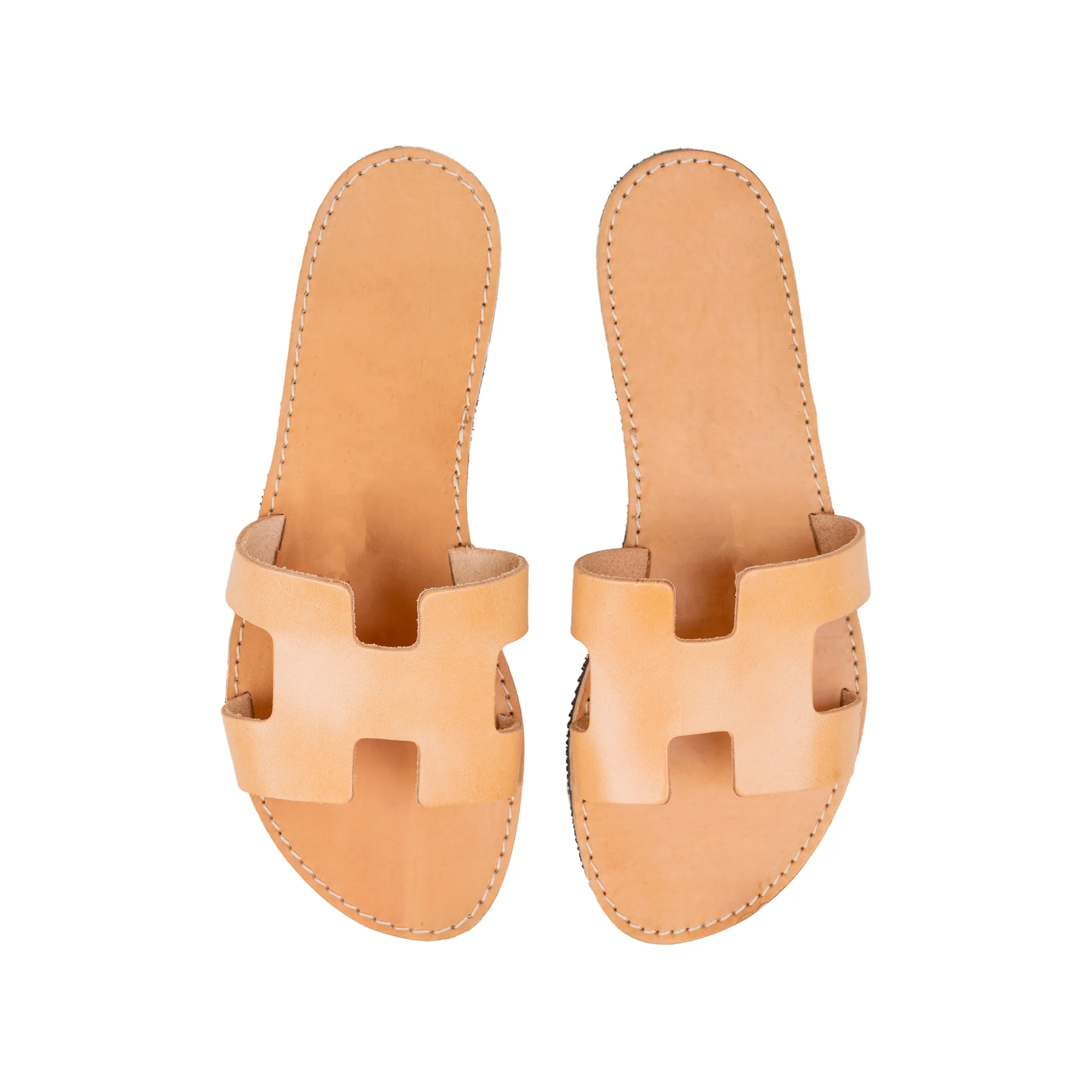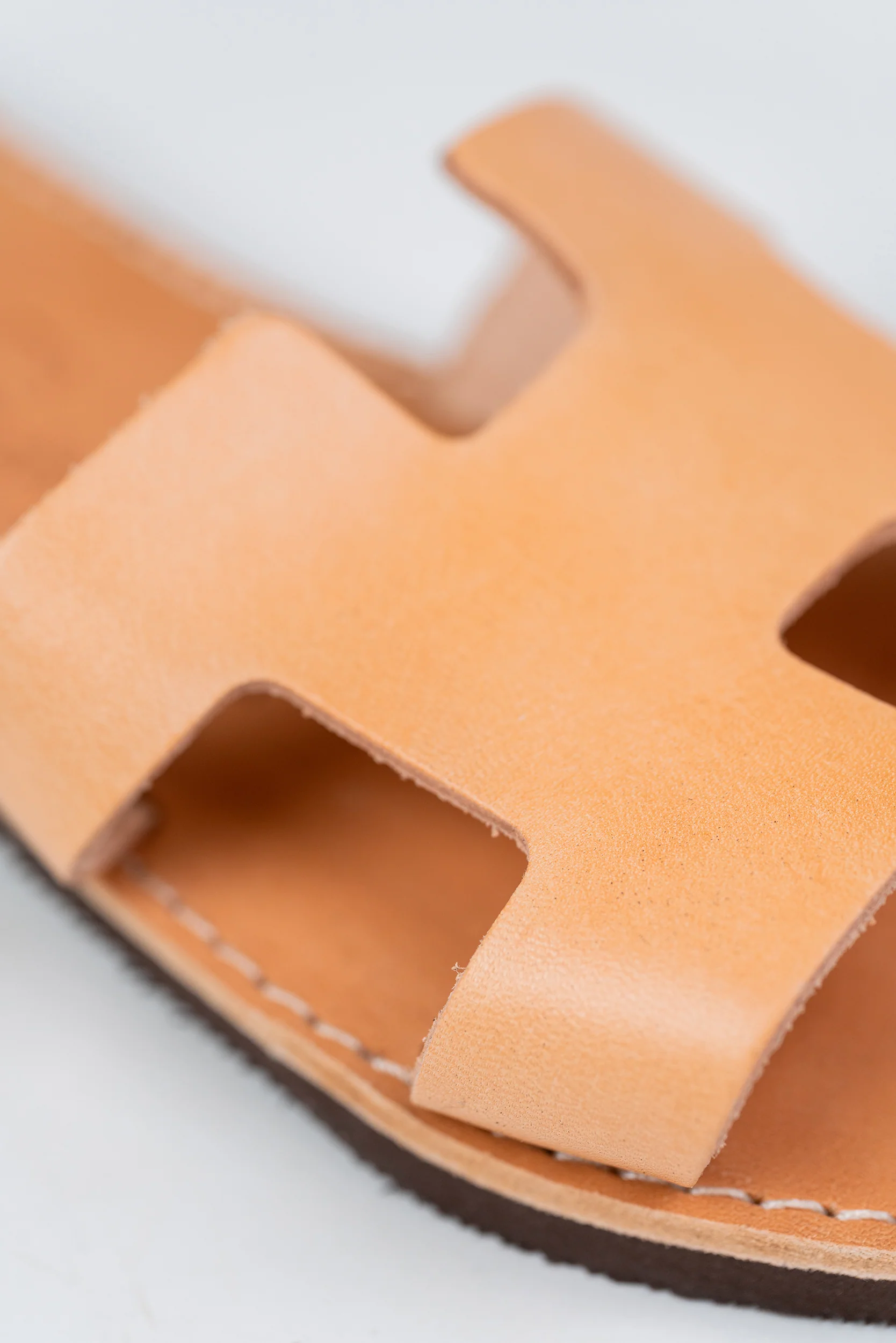 A pair of open-toe naturalcolor leather sandals, handmade from our experienced coworkwers with traditional technics. The sole is lightweight you can enjoy miles of safety walk and sandal’s soles will be always on shape.