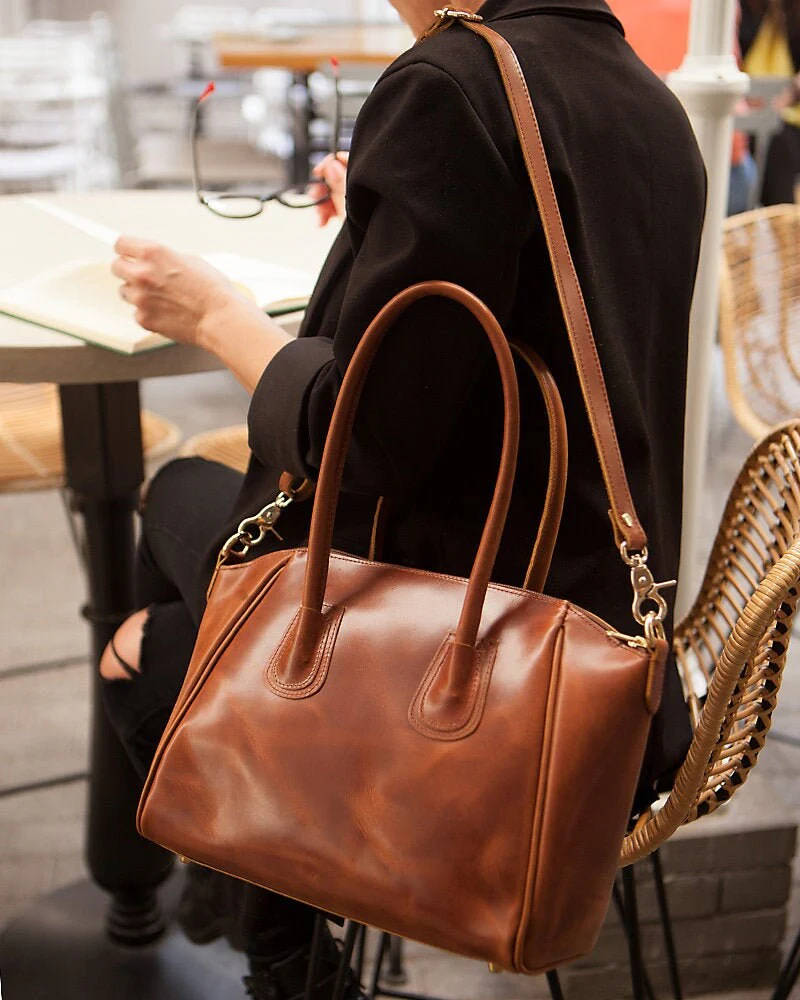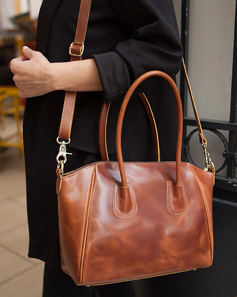 Elegant and practical, this leather tote bag for women features a secure top zipper closure and a spacious interior with an additional zippered pocket for organization. Included is a detachable, adjustable strap that easily converts the bag into a crossbody for versatile wear. Ideal for work, travel, or everyday use, it combines style with convenience. A thoughtful and timeless gift for any woman who values quality and elegance.