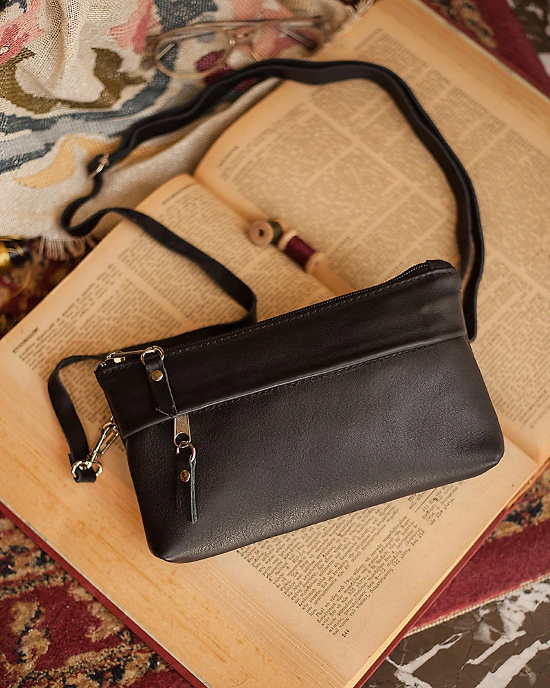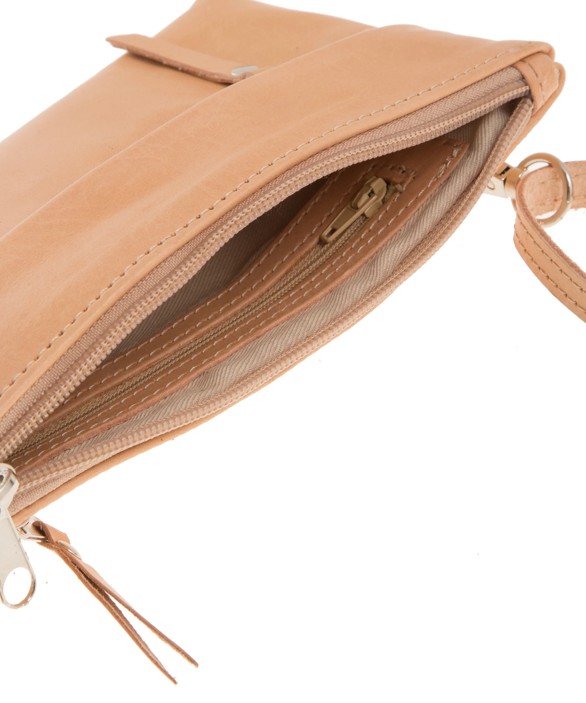 A crossbody bag that you can use it as an elegant purse for your everyday life. This minimalist leather purse has one space which closes with a zipper and you can put your every day essentials or your phone inside. A smaller zip at the front secures a smaller pocket and also has a secret pocket at the back of the purse for your money. The leather strap is removeable and converts your leather bag in to a handbag.
