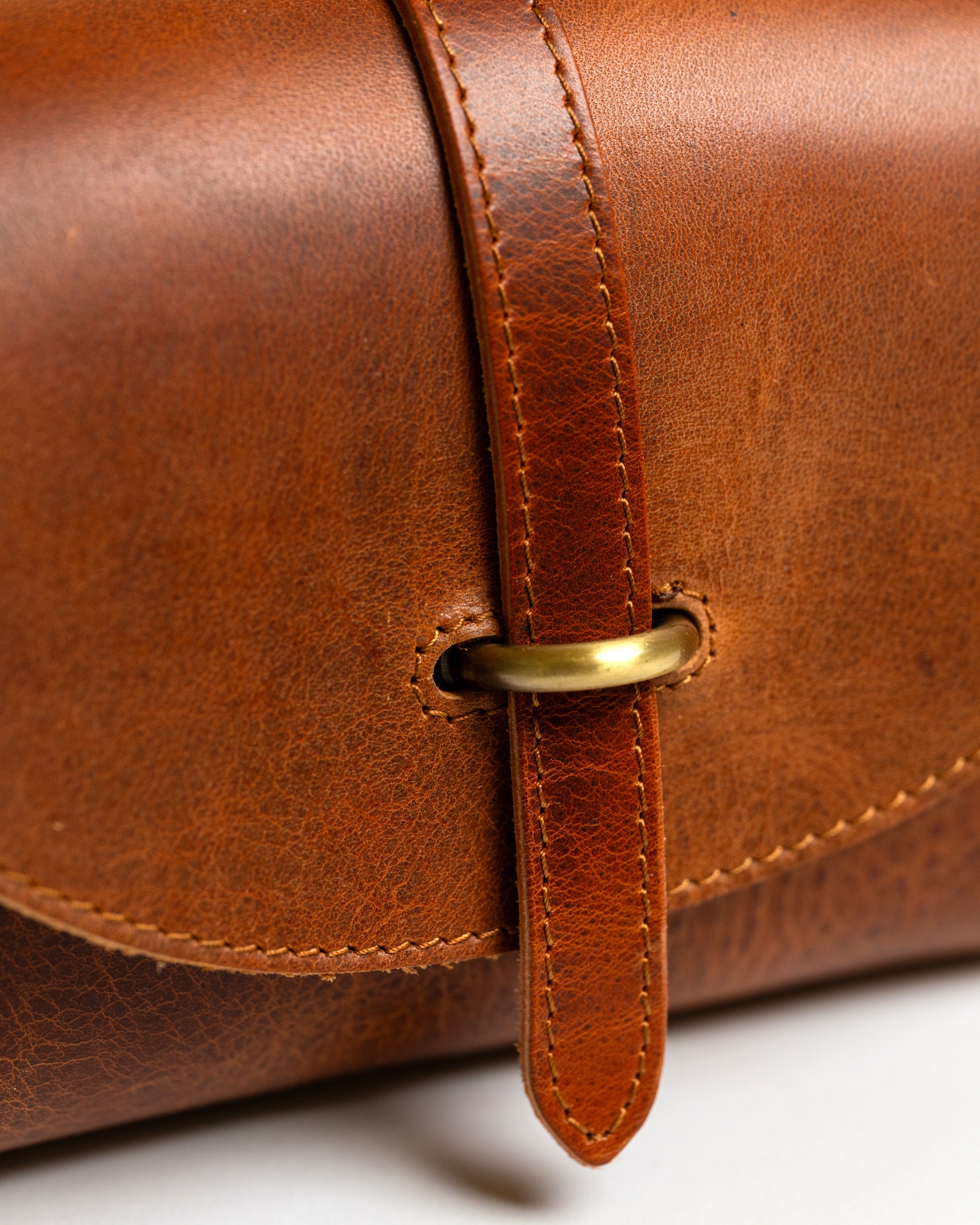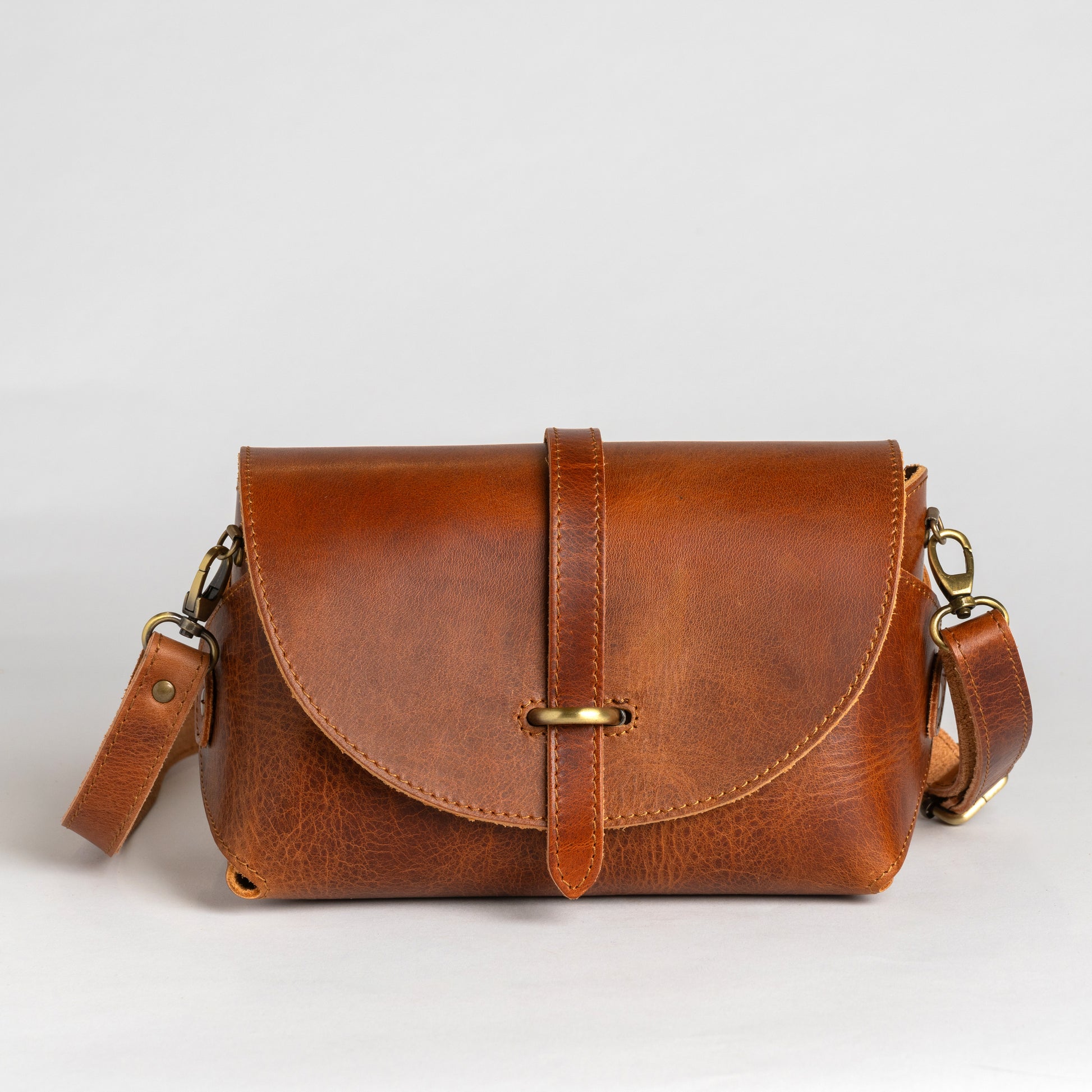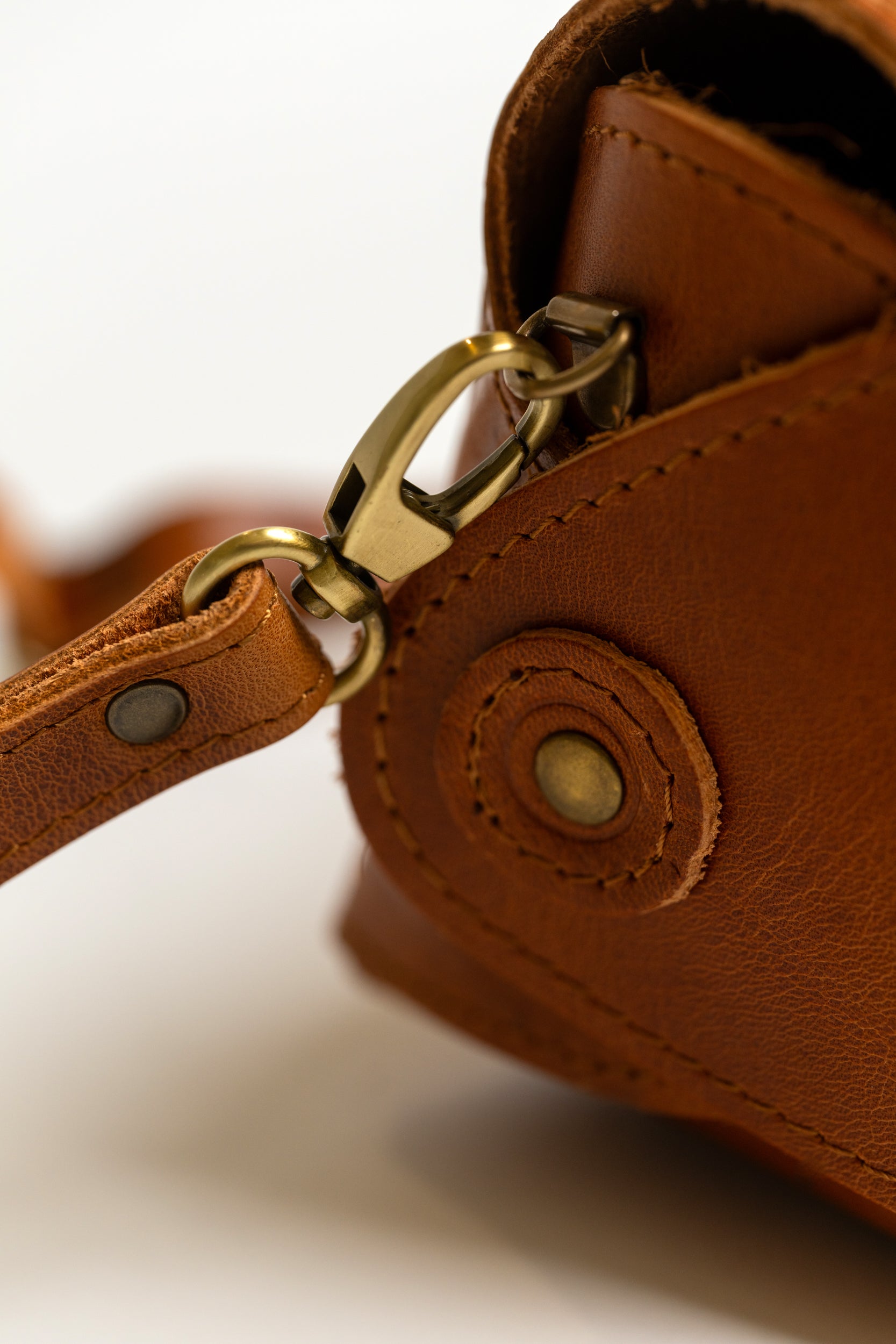 Introducing our elegant handcrafted leather crossbody bag in a rich honey brown color, designed for the modern individual who appreciates both style and functionality. Made from premium quality genuine leather, this bag exudes durability and a luxurious feel. The sleek and minimalist design is complemented by a vintage-style brass clasp, adding a touch of classic sophistication. The adjustable leather strap offers versatility, allowing you to wear it comfortably as a shoulder bag or crossbody. Despite its compact size, this bag provides ample space for your daily essentials, including a phone, wallet, keys, and other small personal items. Perfect for both casual and formal occasions, this versatile accessory seamlessly blends practicality with timeless elegance.