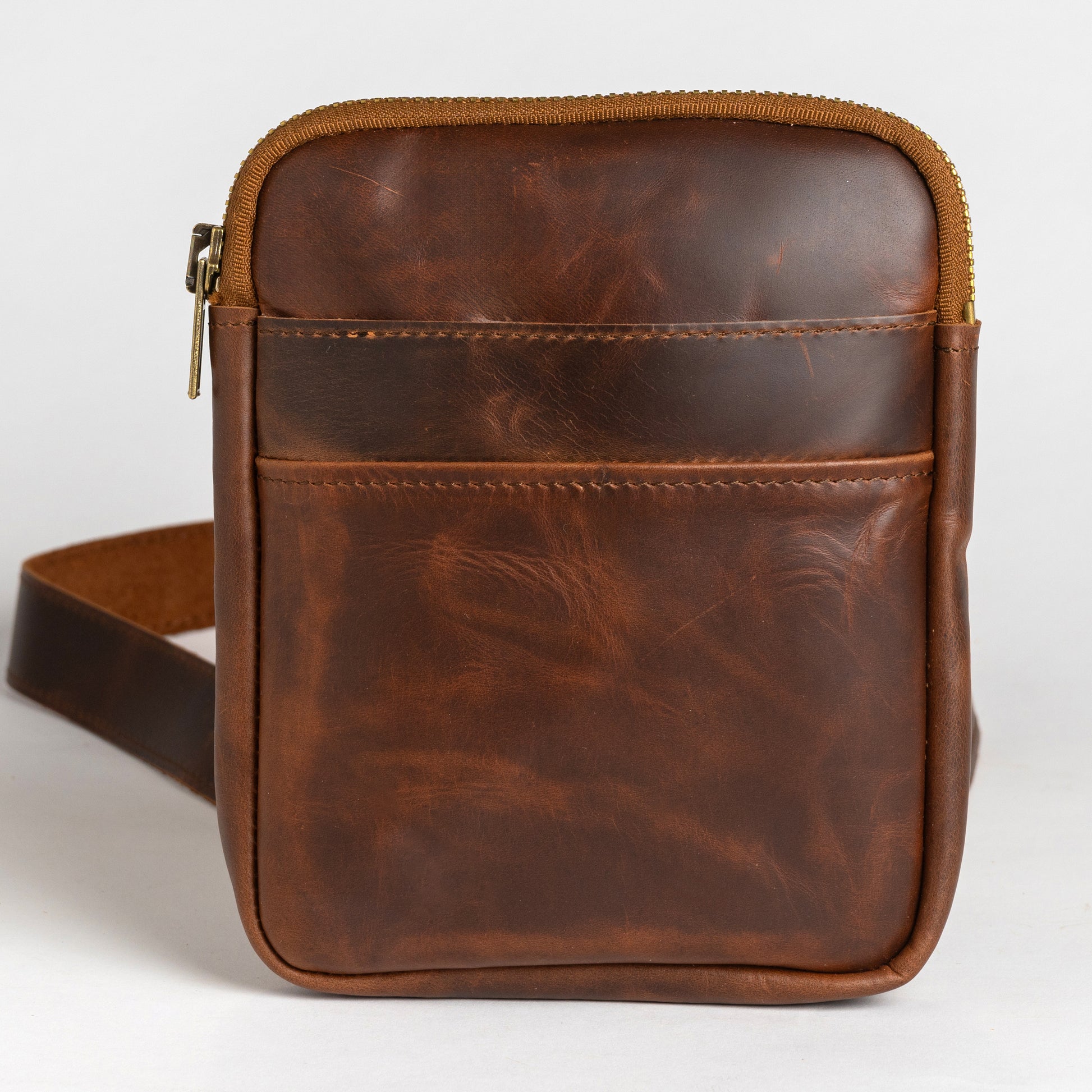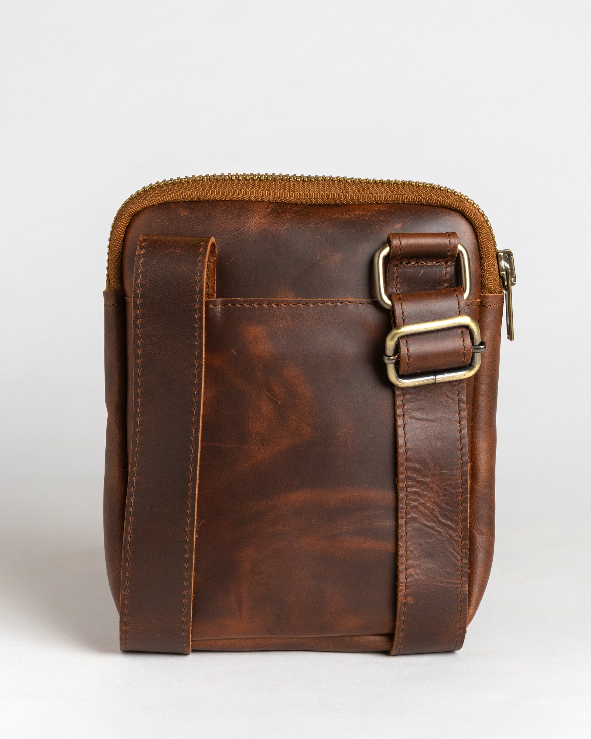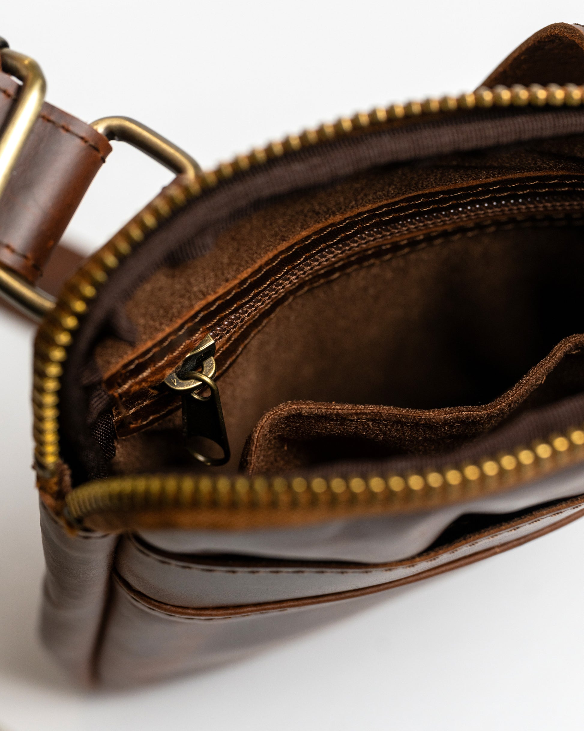 Introducing our sleek and compact men's crossbody leather bag in a rich brown finish, designed for the modern man who values both style and practicality. This bag is crafted from high-quality genuine leather, ensuring durability and a sophisticated look that only improves with time. The smooth finish and clean lines make it a versatile accessory that complements any outfit.