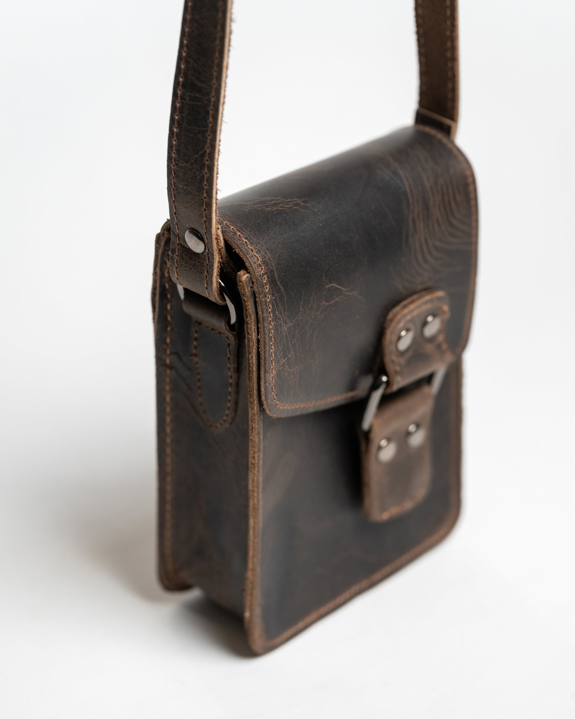 Introducing our rugged and stylish men's crossbody leather bag in a distinguished waxed brown and black finish, perfect for the modern man who values both fashion and functionality. Expertly crafted from high-quality genuine leather, this bag combines durability with a sophisticated look that only improves with time. The distinctive waxed finish provides added protection and a unique, vintage charm.