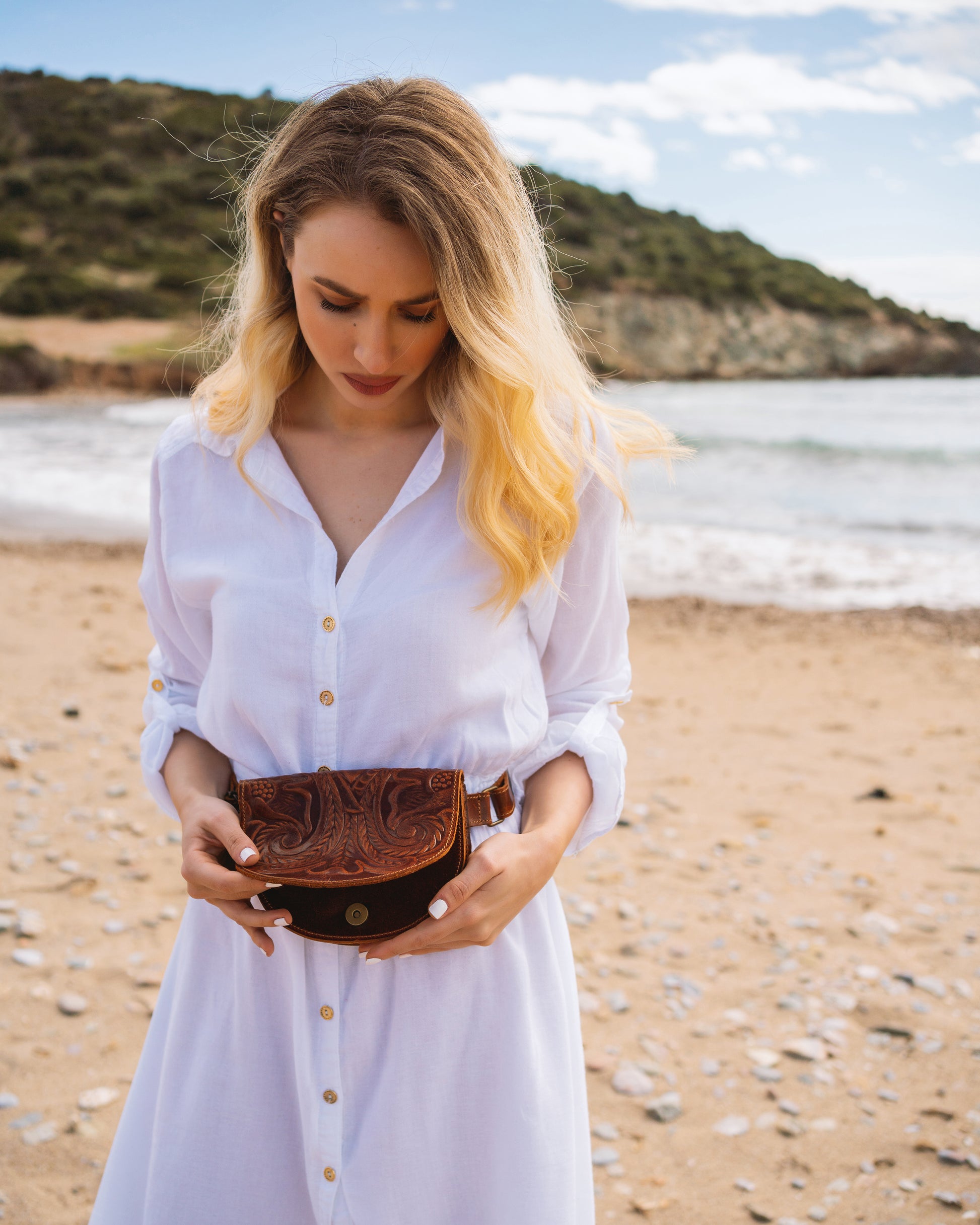 Round Belt Bag Tooled Deianira