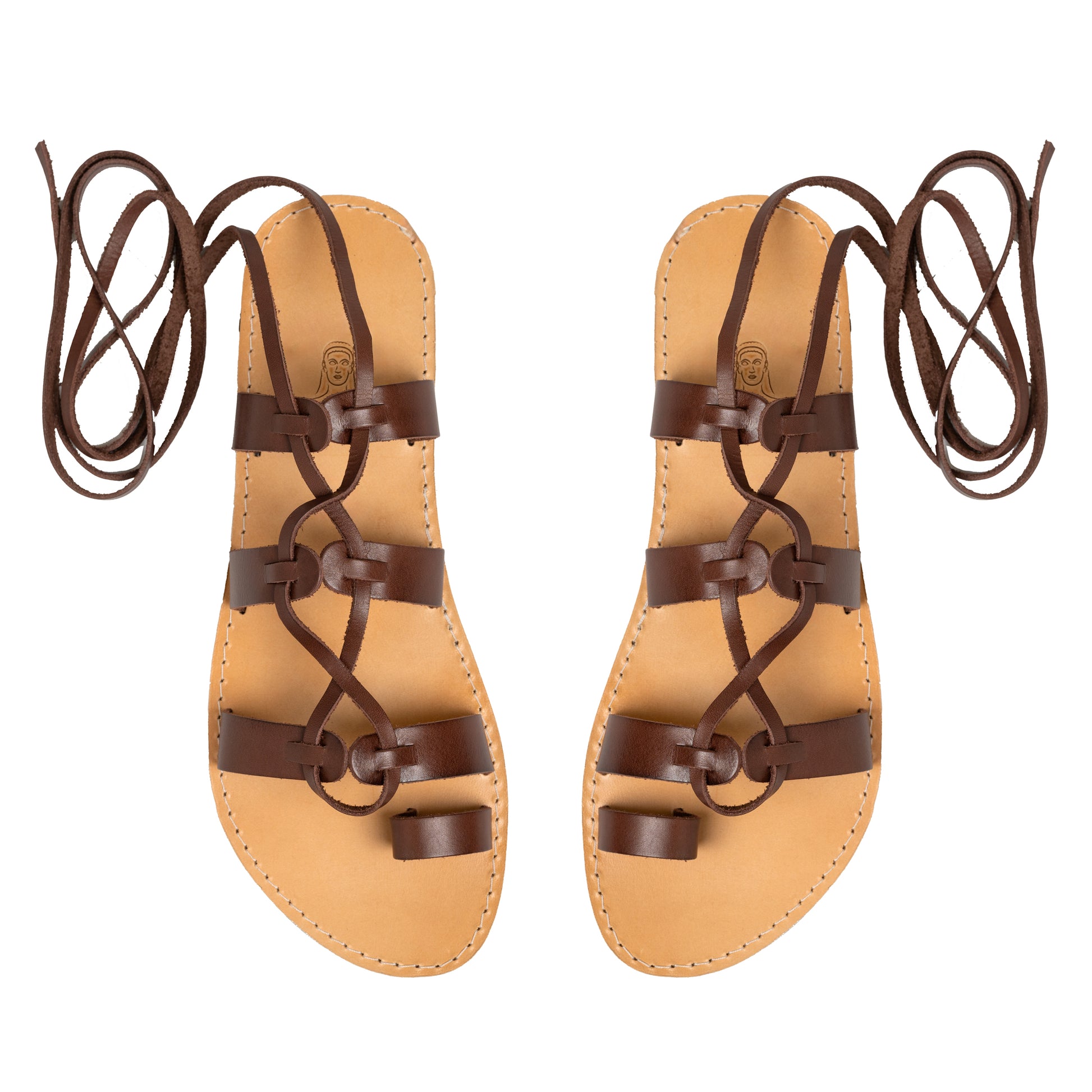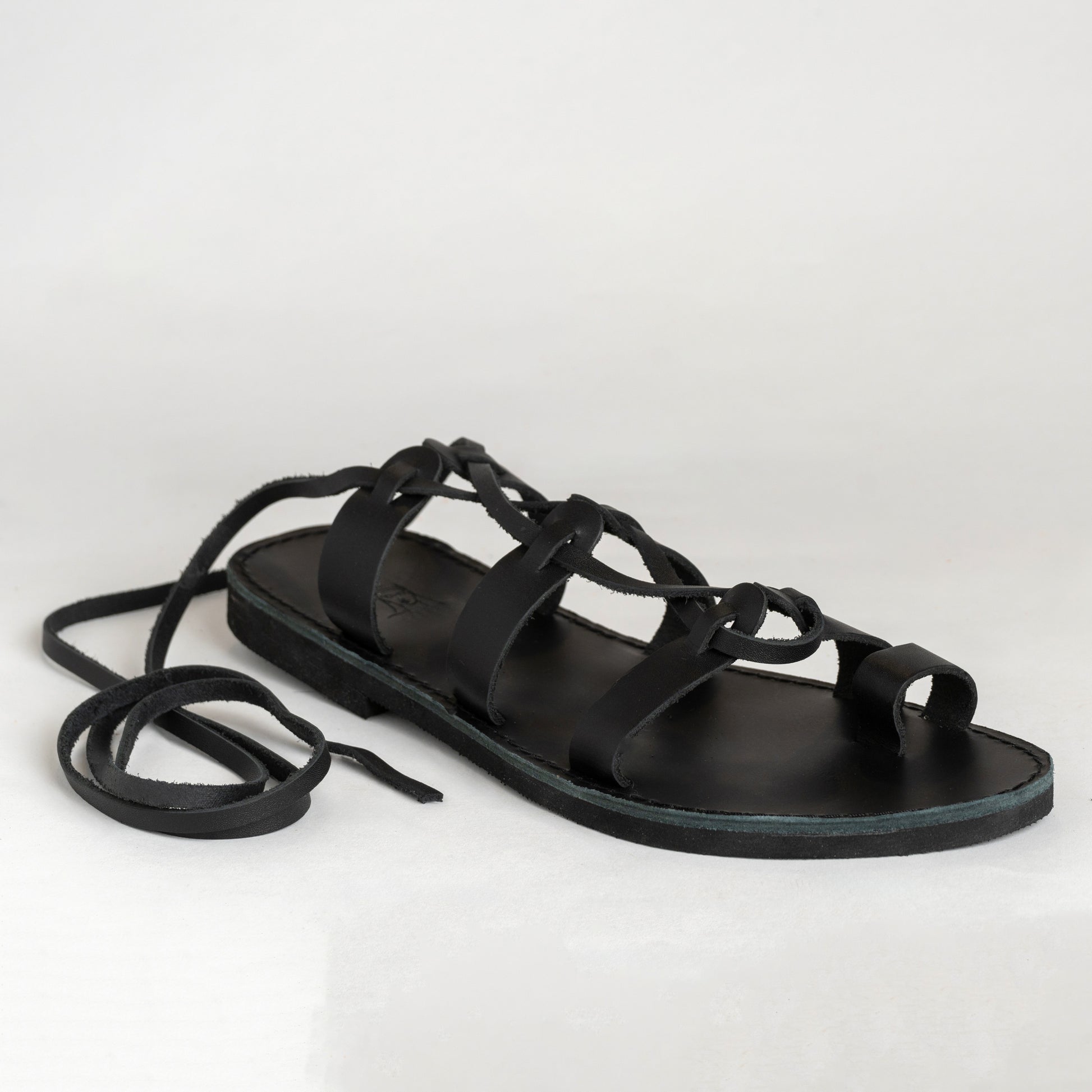 Introducing our striking black leather gladiator sandals, designed for those who appreciate a bold and timeless style. These sandals are meticulously crafted from high-quality genuine leather, ensuring durability and a sophisticated look that never goes out of fashion. The intricate lace-up design, complete with multiple straps, provides both a secure fit and a unique, eye-catching appearance.
