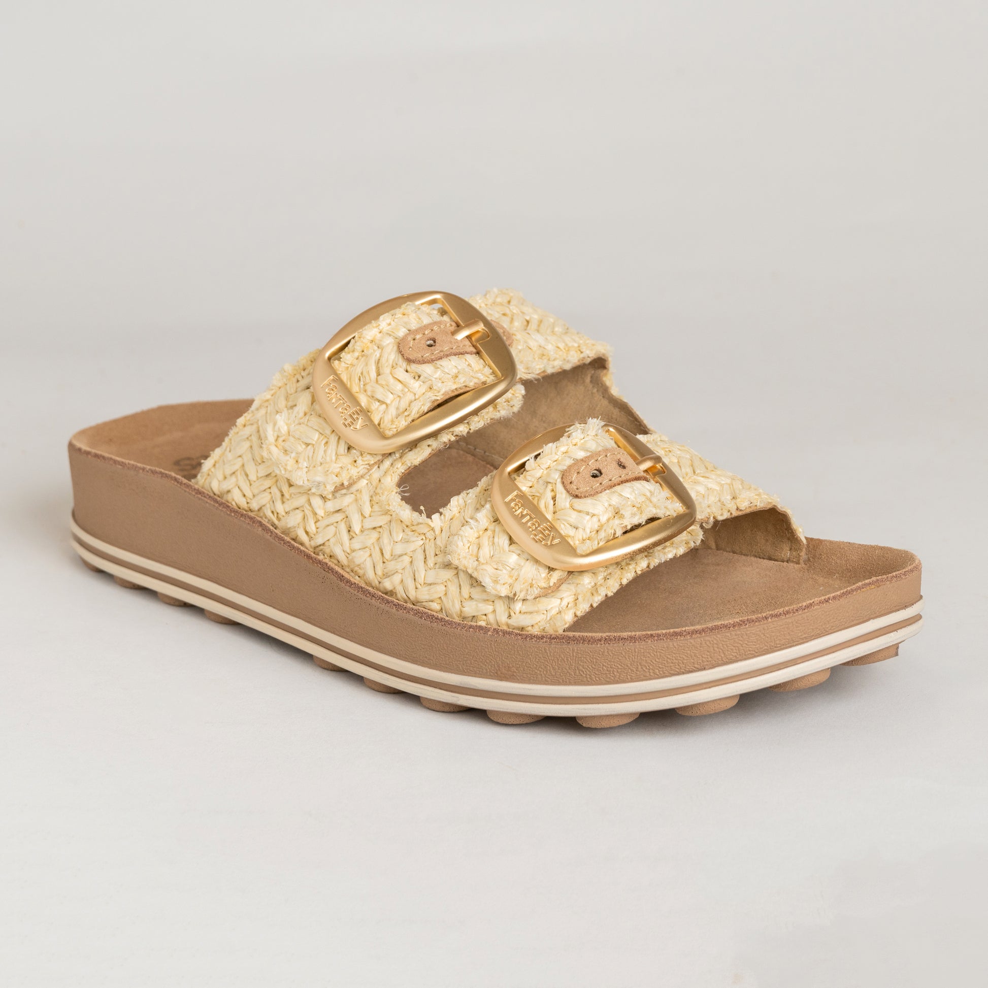 These leather sandals feature high-quality leather uppers with two gold-tone buckles, providing an adjustable and secure fit. The contoured footbed with arch support ensures all-day comfort, while the sleek black color effortlessly complements any outfit, from casual to chic. Perfect for any occasion, these sandals are easy to slip on and off, making them a versatile addition to your wardrobe.