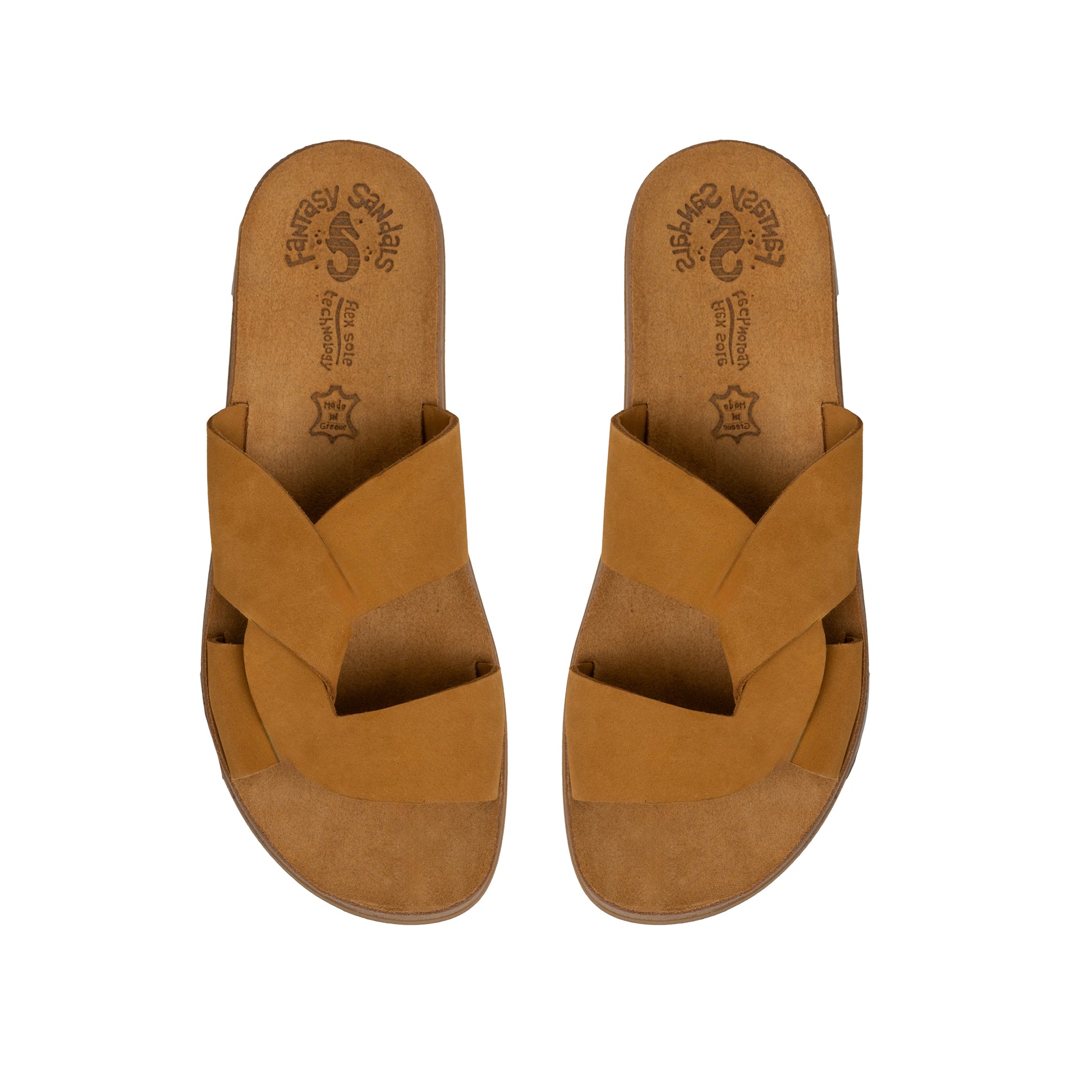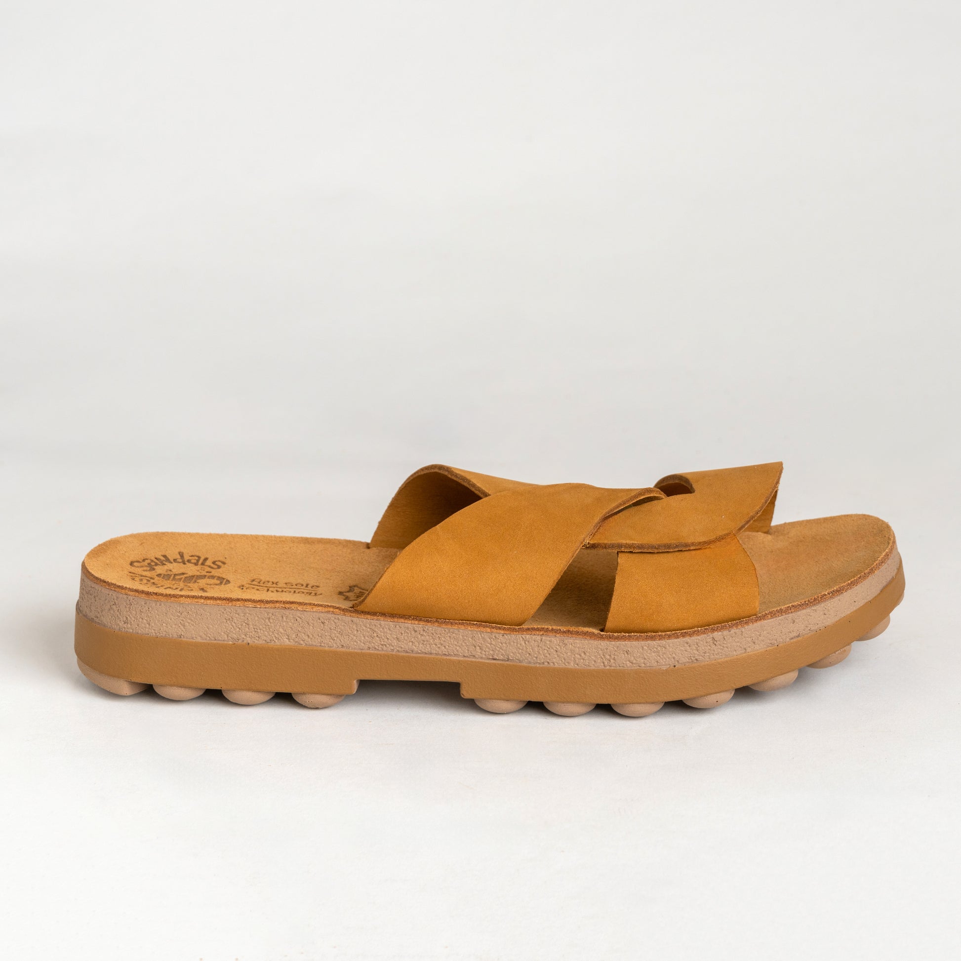 These elegant premium leather sandals feature a soft, brown leather upper with a chic crisscross design that offers both a secure fit and a fashionable look. The contoured leather footbed provides exceptional comfort and support, making these sandals ideal for all-day wear. With their versatile design, these sandals can effortlessly complement a variety of outfits, from casual jeans to summer dresses. Slip into these stylish sandals and enjoy the combination of elegance and comfort.