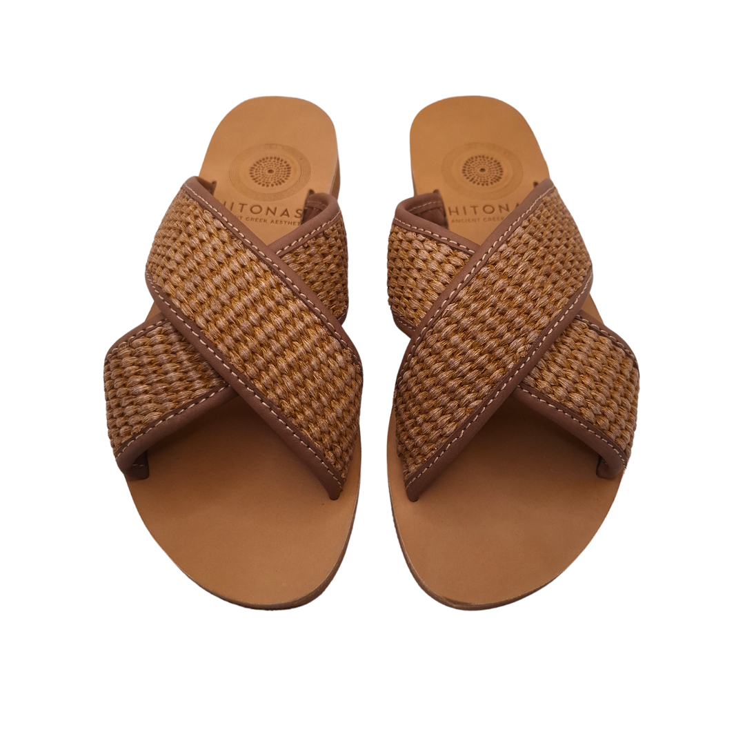 Elevate your summer style with this earthy and effortlessly chic handmade crossover sandal by Hitonas. Designed with a blend of natural textures and premium craftsmanship, it's the perfect companion for sun-soaked days and laid-back evenings.